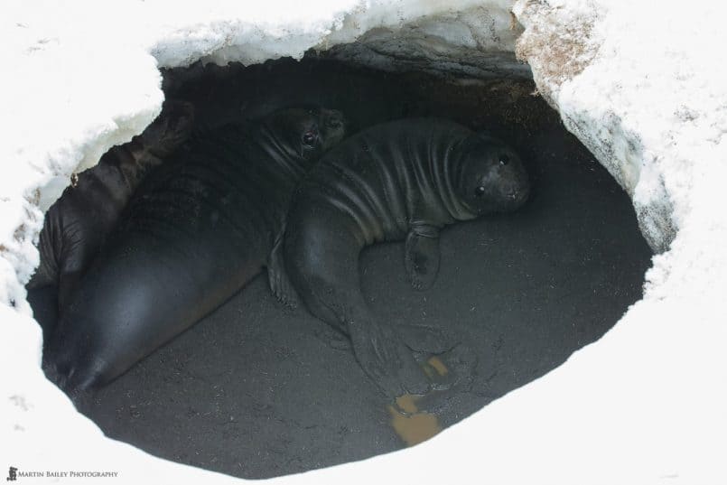 Морские слонята часто попадают в такие ловушки, протаивая снег и лёд под собой.