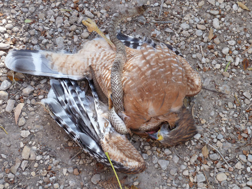 Подписано: краснохвостый канюк и чёрный полоз (Coluber constrictor)